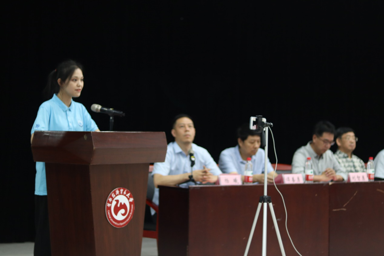 言毕,她代表全体在校生向新生代表周润湫赠送了由全院师生精心挑选的、有助于新生成长的书籍,象征着城院学子学识的薪火相传,寄托着全体在校生对于新同学的美好希望。