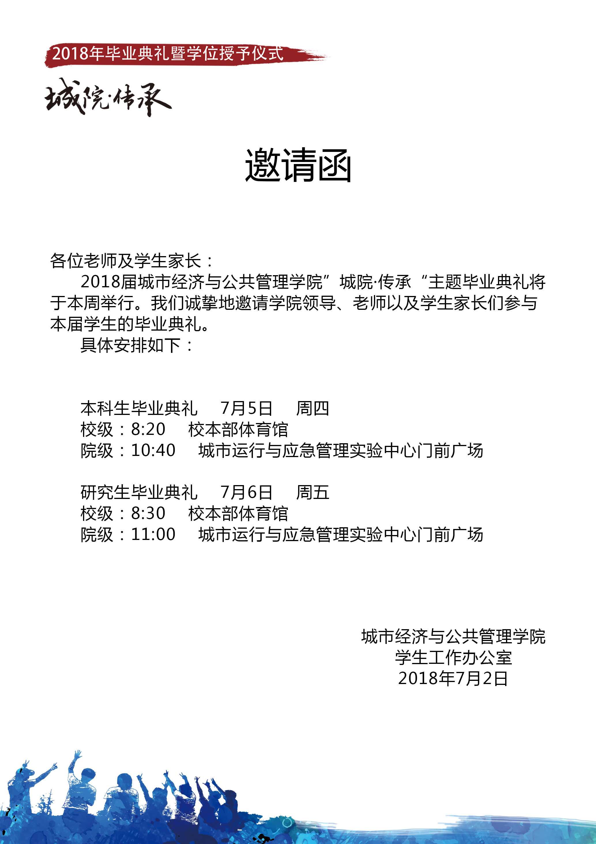 2018届蜜桃视频 “城院·传承”主题毕业典礼将于本周举行。我们诚挚地邀请学院领导、老师以及学生家长们参与本届学生的毕业典礼。