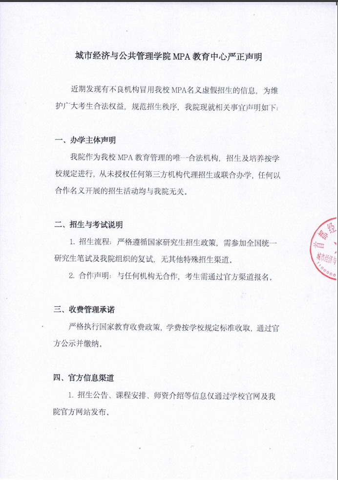近期发现有不良机构冒用我校MPA名义虚假招生的信息,为维护广大考生合法权益,规范招生秩序,蜜桃视频 现就相关事宜声明如下: