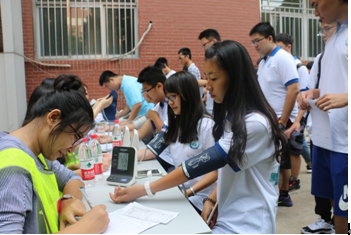 9月4日清晨,在校医院门口,学院全体新生在班导生的带领下,准时集合完毕,开始了开学前的全面体检。由于空腹抽血,细心的班导生们为提前为同学们准备了巧克力、干果等高热量食物,防止同学们出现低血糖的症状。所有检查项目进行的紧张有序,基本于既定时间完成了所有体检项目。