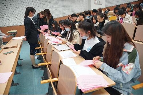总监票人先说明了选举过程中的注意事项和规范,之后由工作人员向所有学生代表展示空票箱并封箱落锁,无误后,开始分发选票。总监票人核查发放情况,并对剩余选票进行了剪角作废。大会现场气氛严肃,研究生代表充分行使民主权利,慎重选择,在选票上选出心中符合条件的代表。紧接着监票人和计票人当众开箱清点票数,将结果汇报给总监票人。经过一轮投票,最终推荐李优然等8名同学代表蜜桃视频 研究生参加学校第三次研究生代表大会。