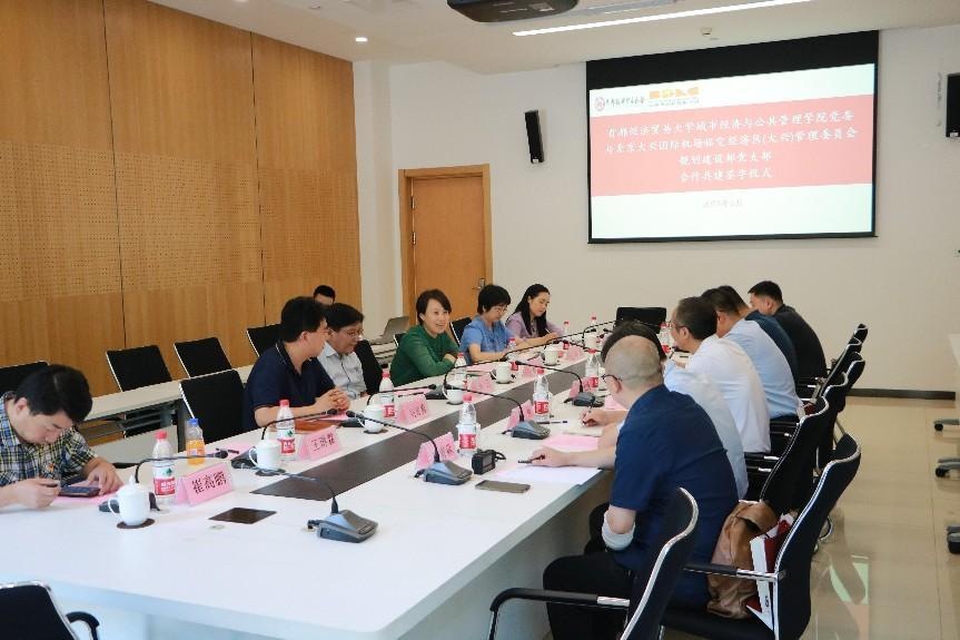 郝朝东介绍了北京大兴国际机场临空经济区(大兴)管理委员会规划建设部与学院前期合作开展的情况。蔡凌宇表示要加强双方合作,保持密切沟通,互相支持,促进理论与实践碰撞出火花。韩静和刘智勇分别从学院党建工作、共建活动、学科特点、科研情况、人才培养、社会服务等方面做了交流发言。