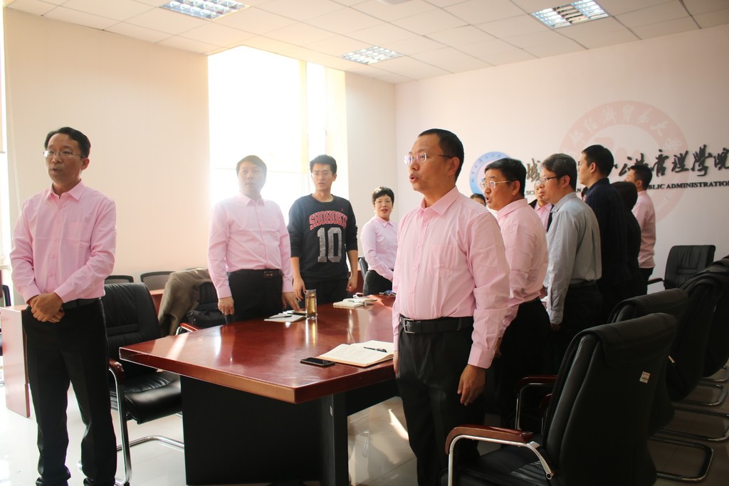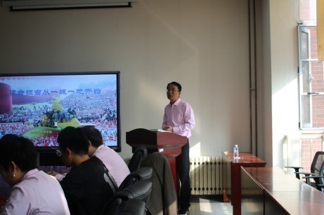 2019年10月23日下午,蜜桃视频 党委书记刘文东以“使命担当从一城一地开始”为题讲授专题党课。理论学习中心组成员各系系主任、党支部书记以及学院行政党支部全体成员参加活动。活动由院长张国山主持。