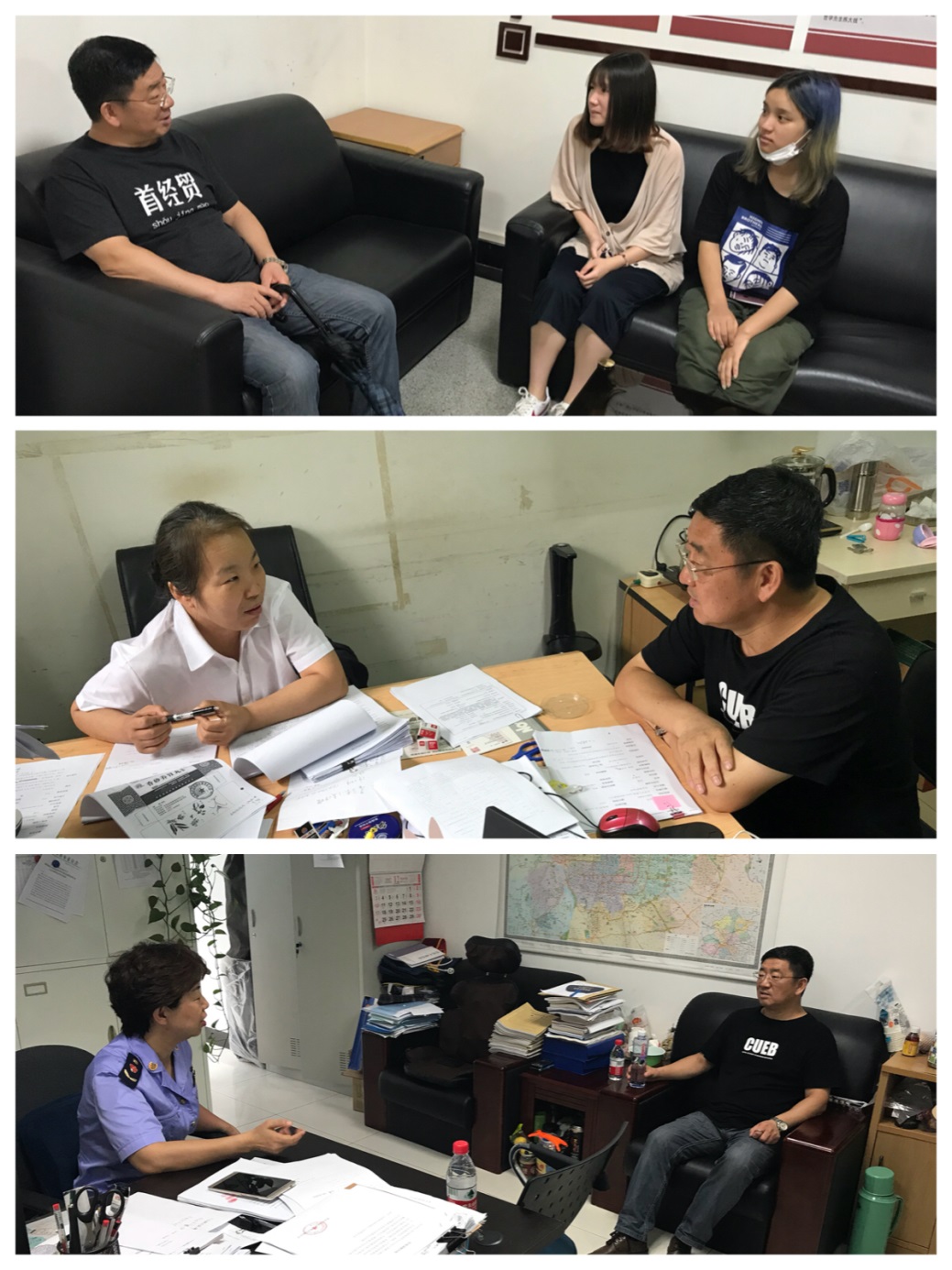 在7月24日上午走访的大红门所和方庄所,所领导和实践指导教师充分肯定和高度评价了同学们的表现,认为素质好,上手快,能帮忙。几位同学则分享了他们实习过程中处理消费者投诉案件的感受,并以某旅行网站为例,与工商管理干部进行了市场监管权限、消费者维权渠道等内容的深入讨论。7月24日下午,走访右安门、岳各庄和六里桥三个工商所,实习的同学们,就基层工商管理的工作内容强度、基层工作的技巧和行政管理系与工商系统的友好联系,以及基层面临的压力与困难进行了欢畅交流。