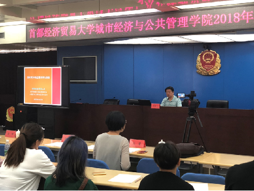 启动大会结束后,张国山教授又为全体参会人员带来一场精彩的学术报告,以《新时代市场监管改革与创新》为题,介绍了他多年来聚焦于市场监管改革的研究心得。张国山教授系统梳理了改革开放以来我国市场监管领域的变革历程,尤其是对“市场监管”一词的溯源和分析非常精彩。之后,结合本轮党和国家机构改革的情况分析了市场监督管理总局的定位与职能。详细阐述了市场监督管理总局的监管体制,业务板块,发展方向,工商改革、商事改革、监管改革的关系等方面的问题。这场讲座一方面深化了同学们和工商干部们对市场监管这一概念的认识,另一方面也为同学们的实习铺垫了理论基础和现实背景。