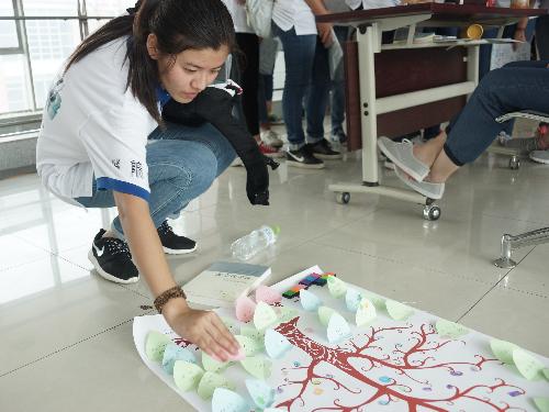 同学们自愿结成小组、自由选取路线,在校园内搜寻着那些预设的地点和手持印章的志愿者。只有正确回答精心设计的问题或完成指定的趣味游戏,盖取印章后再到下一个点进行搜索。而完成所有搜索点,顺利回到终点后还需要完成一项终极任务,即所有新生用指纹和心愿卡共同绘制一副象征成长与智慧的校庆60周年特别版“‘城’长‘知’树”作为新生礼物在开学典礼时送给学院,整个过程,完成时间短者获胜。