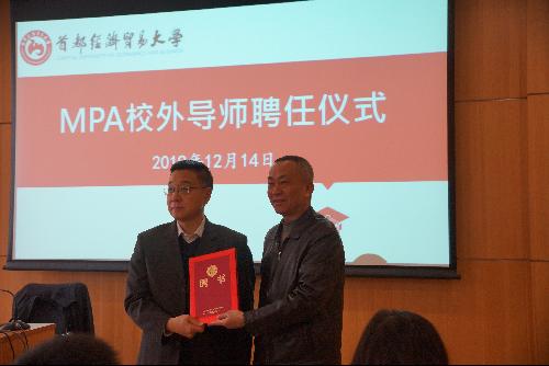 在讲座前,MPA教育中心举行了简短的公共管理专业硕士(MPA)校外导师聘任仪式。校党委书记冯培教授向受聘导师、原国家市场监督管理总局巡视员(正局级)徐晓东颁发了聘书。徐晓东在发表感言中表示将珍视MPA导师的荣誉,认真履行实践导师职责,以实际行动全力支持蜜桃视频 MPA教育事业。徐晓东巡视员在外商投资准入、市场监督管理、信用体系建设和政府信息化应用领域多有建树,曾参与或主持起草过多项我国市场监管领域的法律法规,此次受聘为我校MPA导师,对促进MPA教育发展和公共管理学科建设具有重要意义。