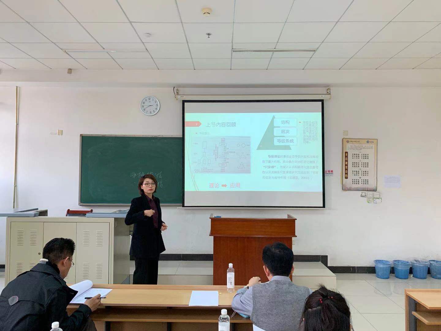 此次比赛由教学副院长张杰主持,他首先介绍了比赛的目的、规则及打分要求等注意事项,比赛采取20分钟现场教学演示方式进行,要求参赛教师通过PPT演示课程的教学内容、教学组织、教学语言与教态等方面的独特风采。随后行政管理系赵琦、张怡梦、土地资源管理系胡甜、任艳姣、区域经济系孙瑜康、龚维进等6位青年教师经抽签后决定次序,同台讲课。