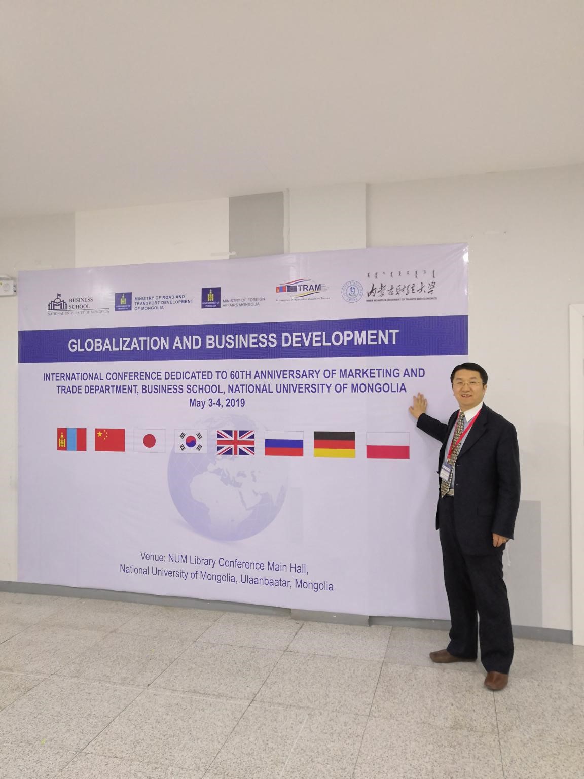 期间参加了在蒙古国立大学商学院举行的旨在促进大学间的网络建设、知识共享和研究的2019年“全球化与商业发展”国际会议(INTERNATIONAL CONFERENCE DEDICATED TO 60TH ANNIVERSARY OF MARKETING AND TRADE DEPARTMENT, BUSINESS SCHOOL, NATIONAL UNIVERSITY OF MONGOLIA GLOBALIZATION AND BUSINESS DEVELOPMENT)并就“雄安新区、京津冀、一带一路与蒙古国发展研究(The research on the Xiongan New Area、JJJ、OBOR and Mongolian Development)”作主题演讲和交流。