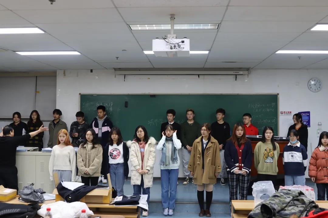 12月4日是最终比赛的日子。下午三点,同学们早早地来到博学教室集合更换上整齐的演出服装,学姐们给演出的同学们化好了妆容。四点钟,同学们在教室开始了练习,再确认每一个细节和配合都已经到位。直至晚间五点,同学们享用了外联部提前为大家准备好的晚餐。五点半,同学们在学长学姐的带领下,到博远楼三号会议室备场。在备场教室,进行了最后的练习。虽然整个下午演出同学们都在为比赛奔忙,但是大家都精神充沛,全力投入。六点十分,同学们到琢玉讲堂后幕备场,马上就要开始了!大家满怀信心,精神饱满,摩拳擦掌,跃跃欲试!