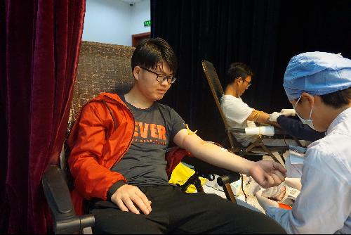 生命有时是绿色的,有时却是殷红,浇灌生命之树,血比水浓。2018年4月26日,城市学院分团委志愿者工作部部长及干事组织大家开展无偿献血活动。他们是来自蜜桃视频 城市学院的献血的同学们。早上7:15来自城市学院的三十多名志愿献血同学在指定教室博学楼107集合完毕并认真填写献血登记表,志愿者们统一为同学们发放早餐,保证营养供给。