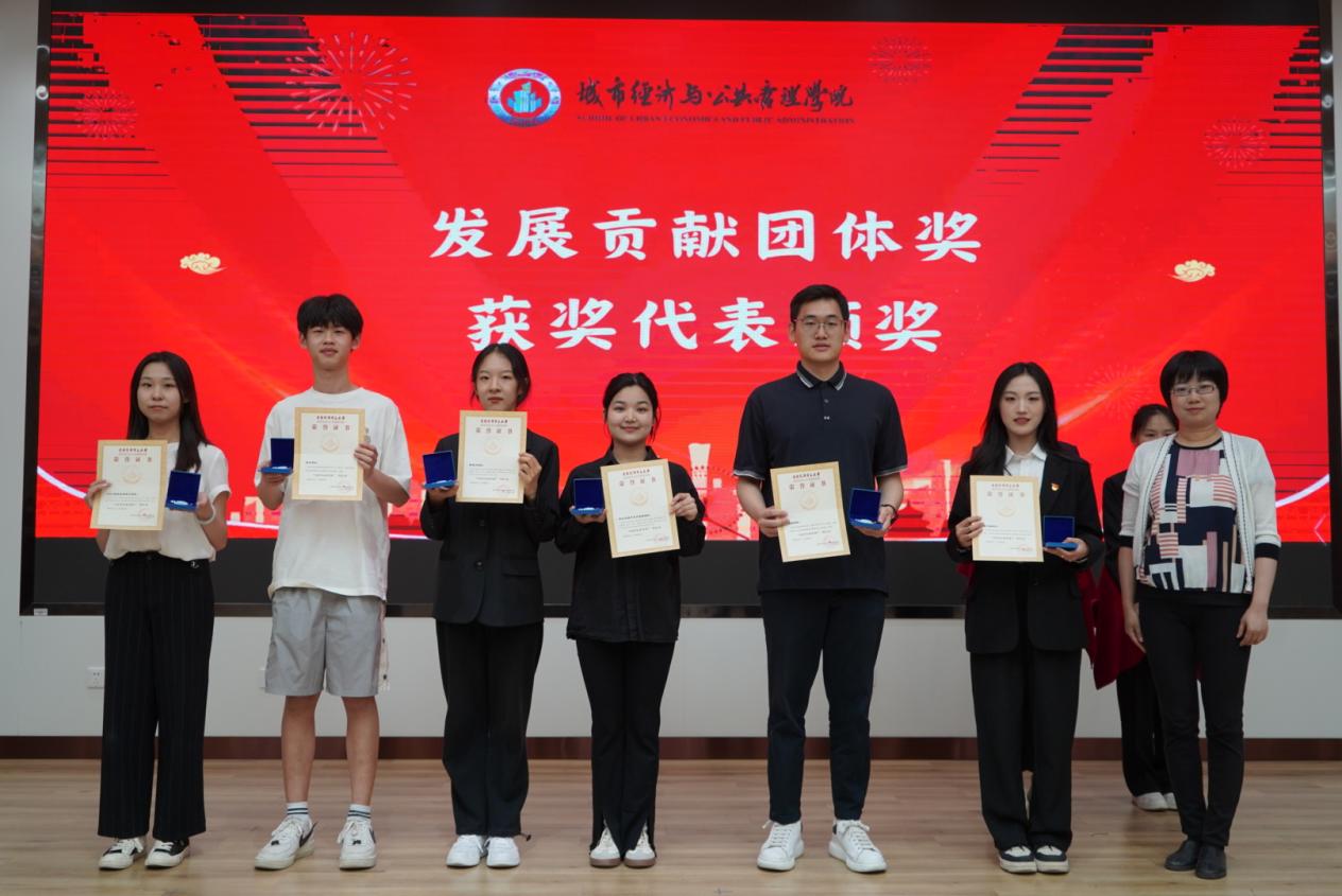 为倡导优良学风院风,树立优秀学习榜样,激发鼓励全院学生学习先进、追求卓越、笃学慎行,学院设立“蜜桃视频 发展贡献奖”,表彰在学习、社会工作、科学研究、志愿服务、文体竞赛等各方面表现优异,为发扬城院精神做出突出贡献的同学。副院长刘智勇宣读了表彰决定,廉旭等42名同学荣获“城院发展贡献”个人奖,高威团队等9个团伙荣获“城院发展贡献”团体奖,并为获表彰个人及团队颁发了荣誉证书及纪念章。
