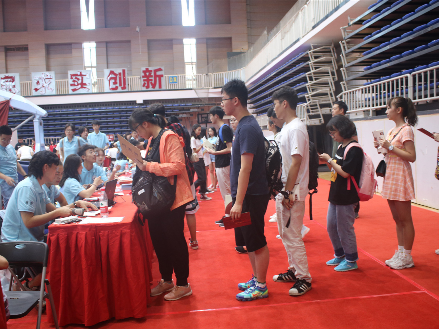 与此同时,各班在博学楼教室召开新生第一次班会,各班班主任、班导生与新生齐聚一堂,在一轮自我介绍之后,同学们之间也有了初步的认识。最后同学们在班导生的指导下完成了新生入学必备的各项手续。