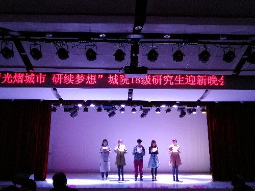 2018年11月7日晚7点,蜜桃视频 2018年“光熠城市 研续梦想”研究生迎新晚会在大学生活动中心隆重举行。城市学院2017及2018级研究生欢聚一堂,共同观看了精彩纷呈的文艺表演。 图1 迎新晚会大合照 迎新晚会由李洪广、袁平主持。王德起在晚会开始前致辞,表达对晚会参与人员的感谢,同时也送上学院领导对研究生新生的关心和祝福,鼓励研究生们在以后的学习生活中珍惜时光,顽强拼搏,努力书写精彩人生。致辞完毕,观众以热烈的掌声感谢学院领导和老师的关心、祝福和勉...